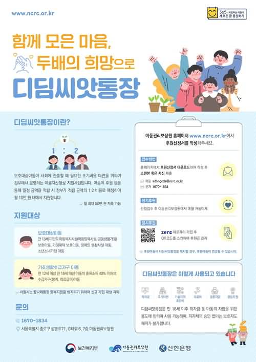디딤씨앗통장은 단순한 저축 통장이 아니라, 아이들이 안정적으로 미래를 준비할 수 있도록 돕는 ‘디딤돌’입니다.